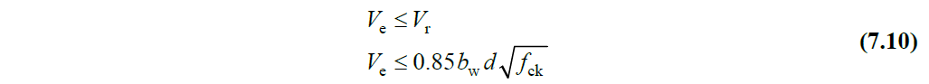 Columns, beams and ductile element pitch of the shearing force calculated in accordance with the bending capacity to be classified V e 's in Eq. (7.10) ' also must provide limits given. The V e value is calculated using the available material strength values in accordance with the knowledge level in columns, beams and walls .