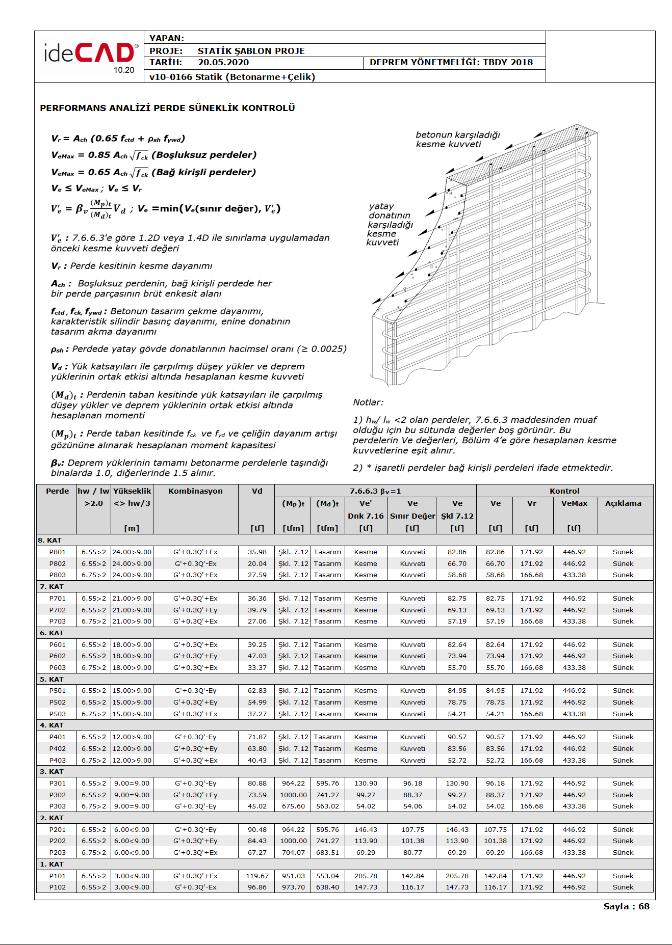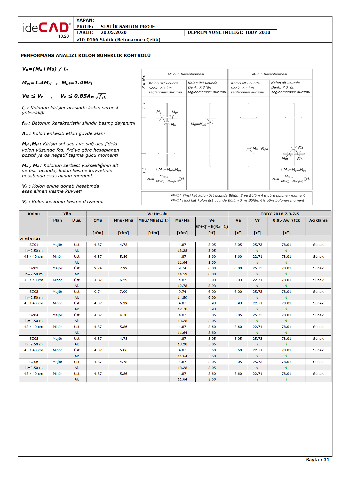 In the pictures below, column, beam and curtain ductility checks in the evaluation of existing structures with earthquake calculation in line with the ŞGDT approach are shown.