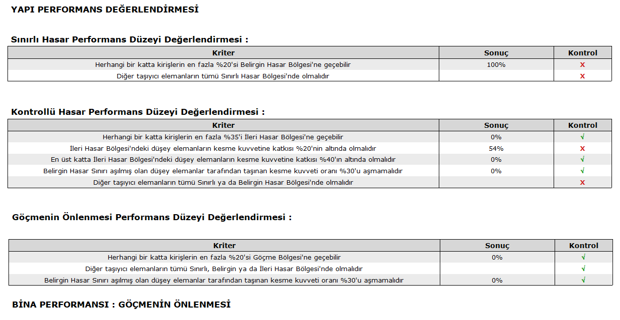 In order for the existing reinforced concrete buildings to be at the Prevention of Migration (LO) performance level, all of the following conditions must be met.