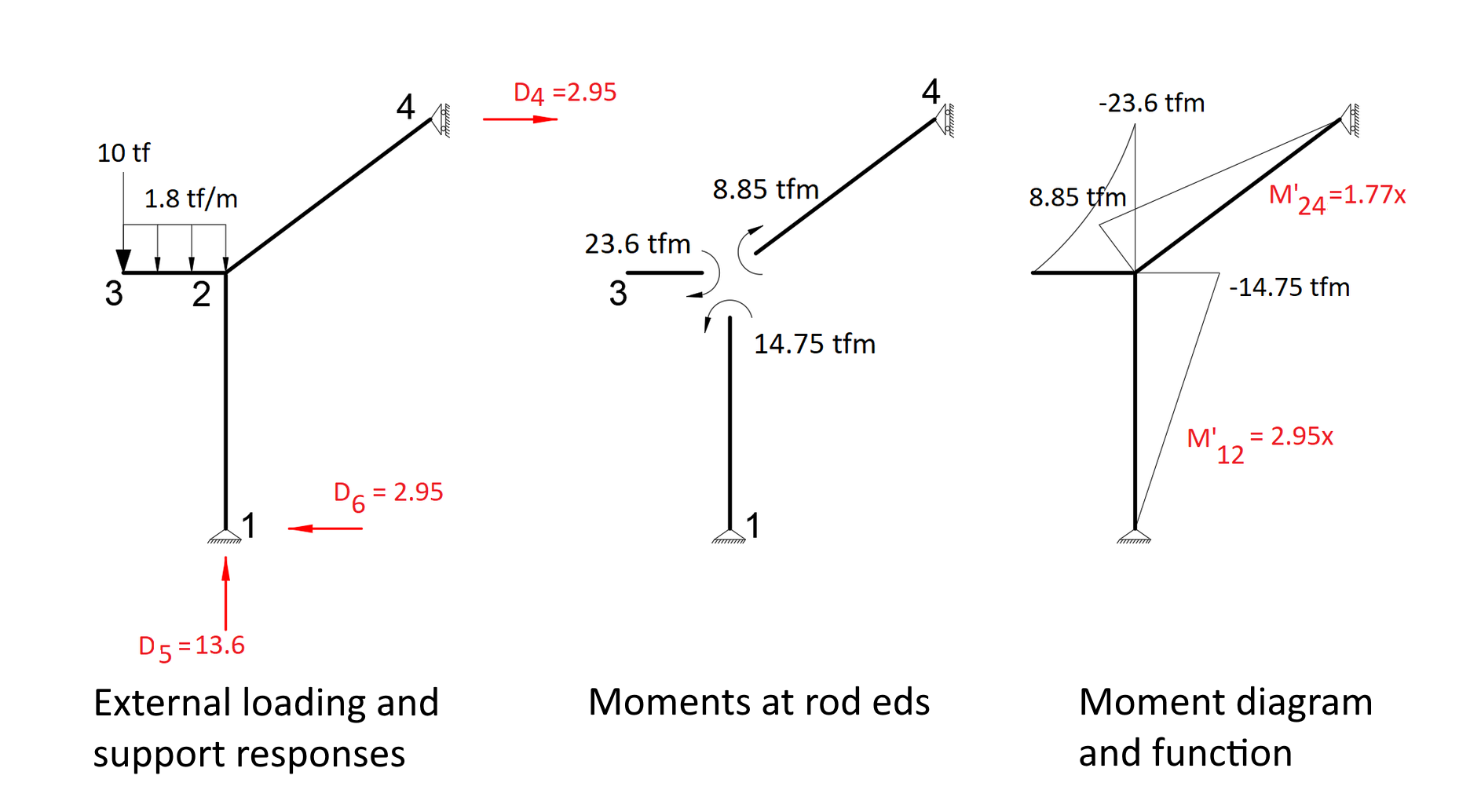 M 12 (x): 1-2 bars moment function M 24 (x): 2-4 bars moment function ΣM 1,dn : Total moment about 1 DN ΣM4,dn: Total moment about 4 DN ΣD: Total equilibrium