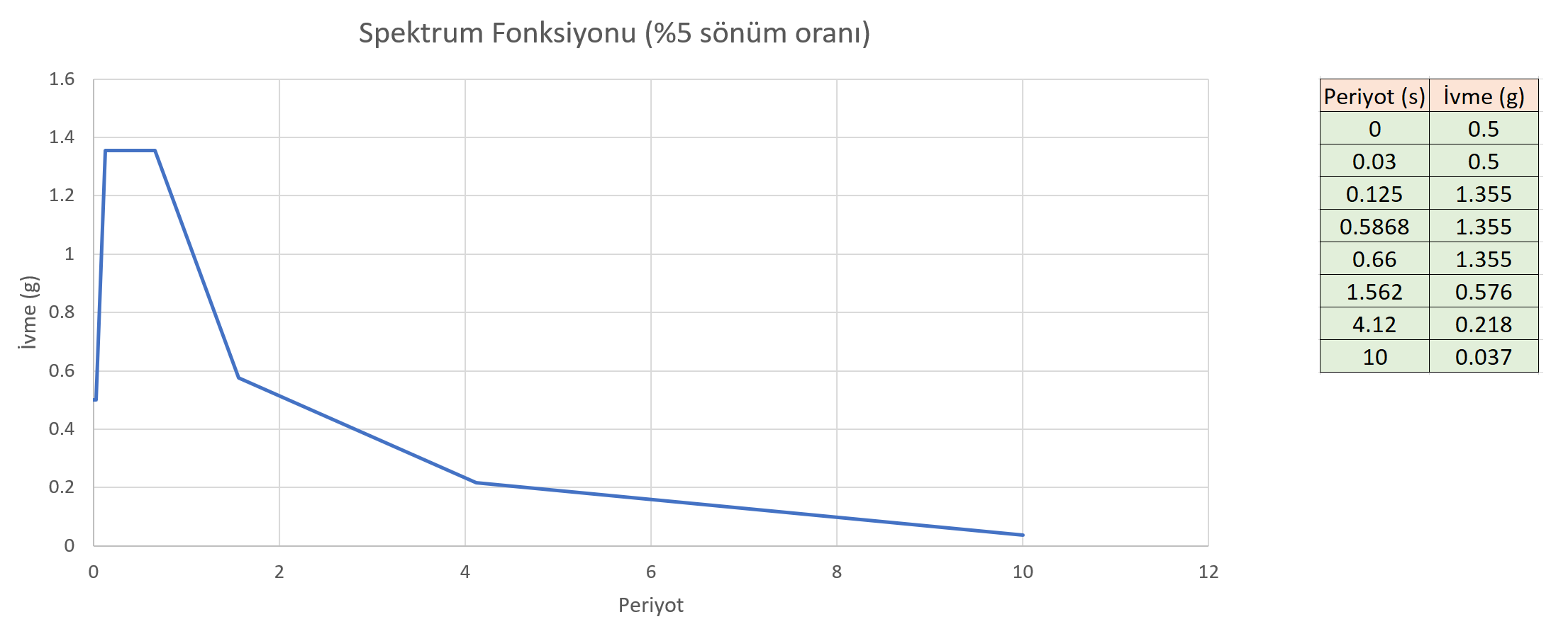 In the Mode Joining Method used , the damping rate is taken into account as 5%. The horizontal elastic design spectrum (Response spectrum function) is defined as follows.