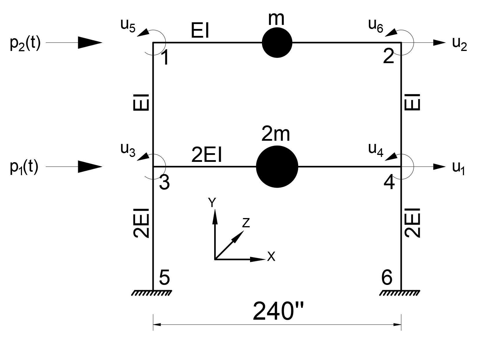 Important Note: The masses are defined only on the beam members for ease of independent manual calculation.