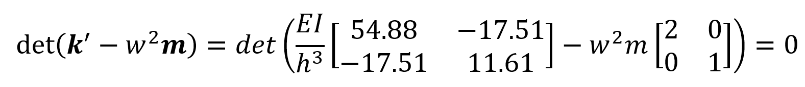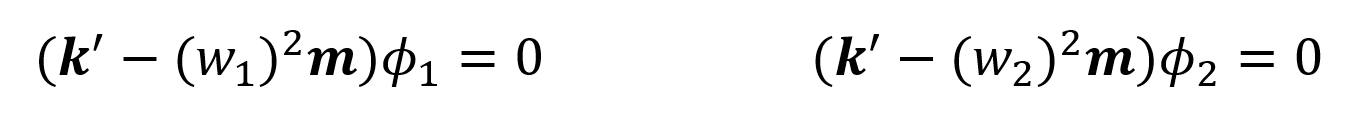 From the solution of det ( k ' -w 2 m ) = 0 there are two solutions w. These refer to the angular vibration fractions of each mode. In the above equation w n means the angular frequency of the n th mode.