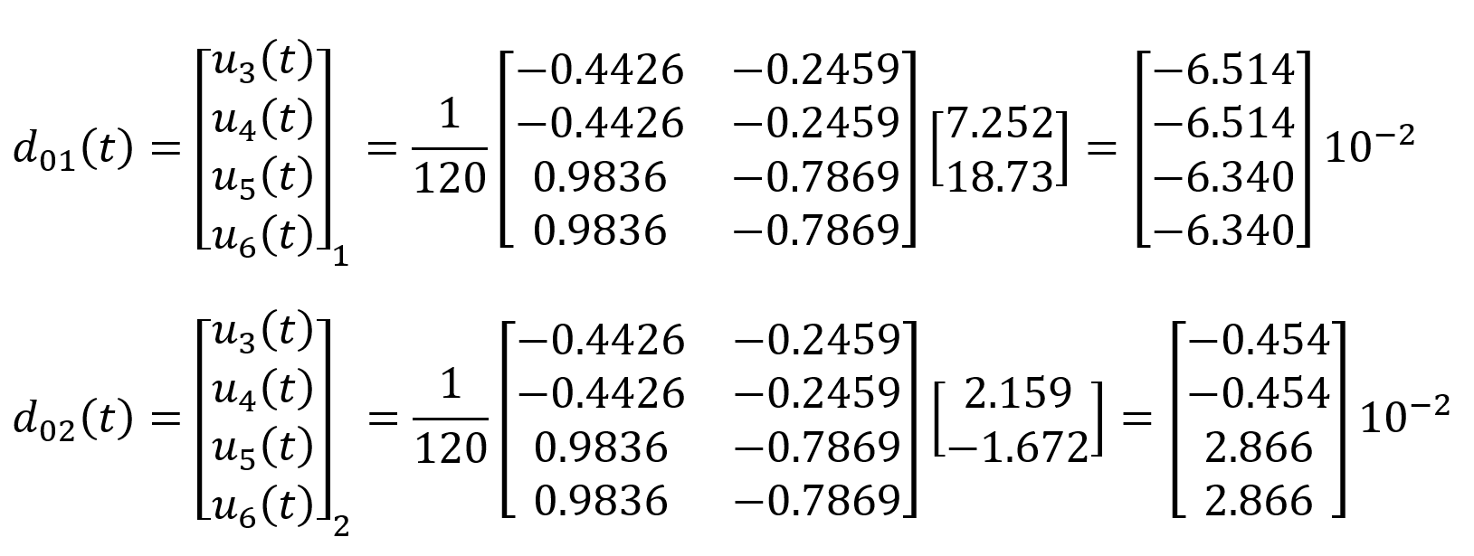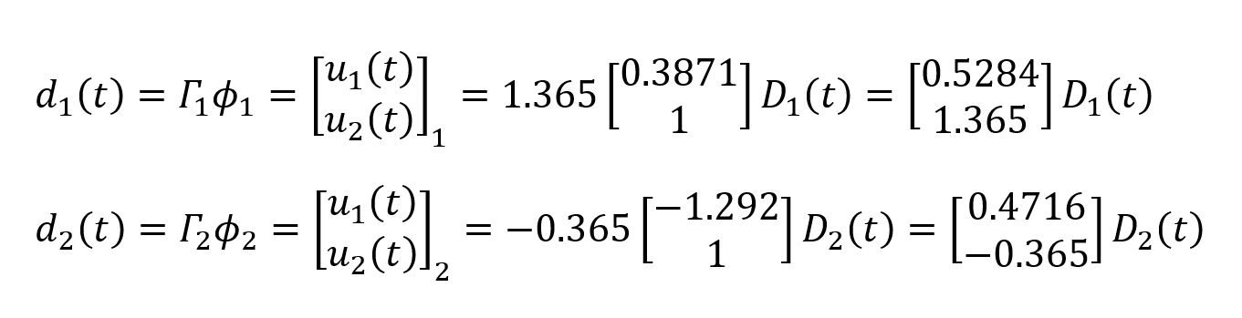 values are found. Using these values, the deformation vectors d 1 (t) and d 2 (t) for the first and second mode are found as follows.