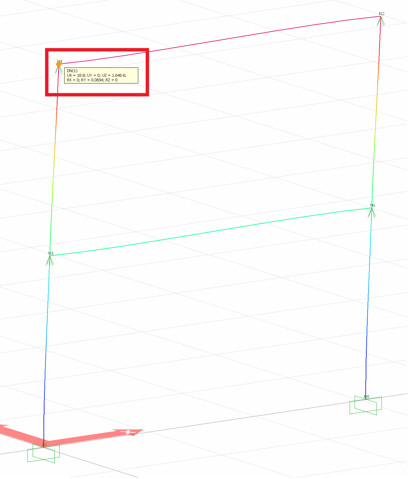 The values of u 1st floor = 7.59 in and u 2nd floor = 18.8 are exactly the same as the results of ideCAD Structural.