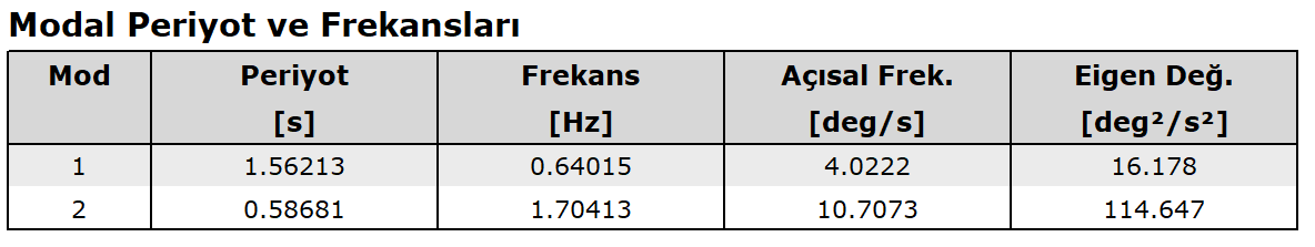 angular frequency values are found. After finding the angular frequencies, the natural vibration periods of each mode can be found.