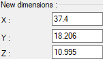 New dimensions ![]() The dimensions of the imported file in the x, y, z plane can be changed. |