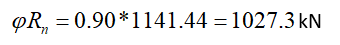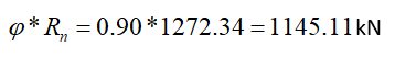 900,396 kN | 1027.3 kN | 0.876 | √ |