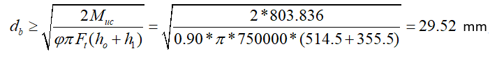 Leh | 72 mm | L eh ≥ 2d = 2 * 30 = 60 mm conformity check for application | √ |