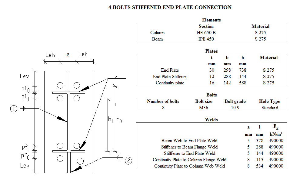 4 Bolts Stiffened End Plate Connection Design
