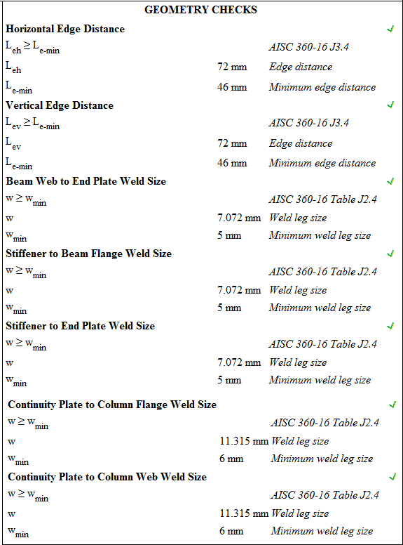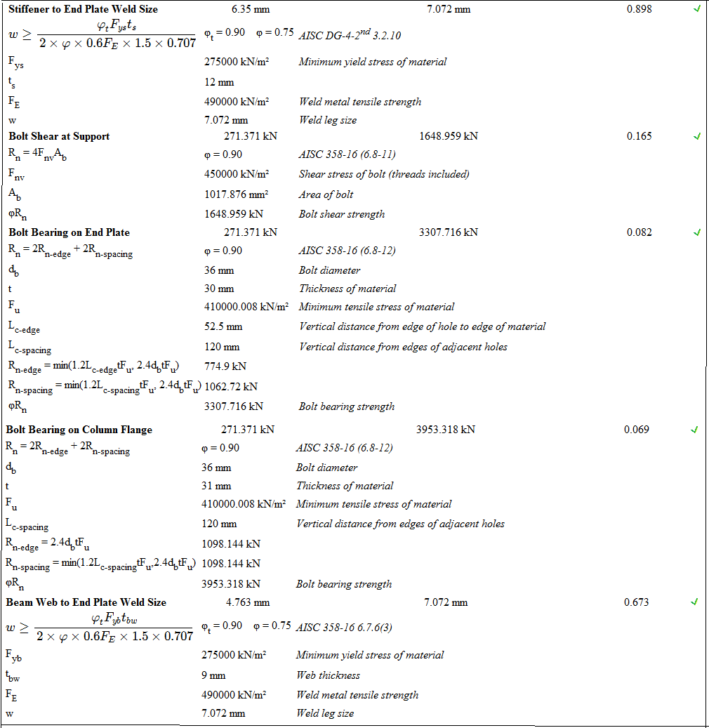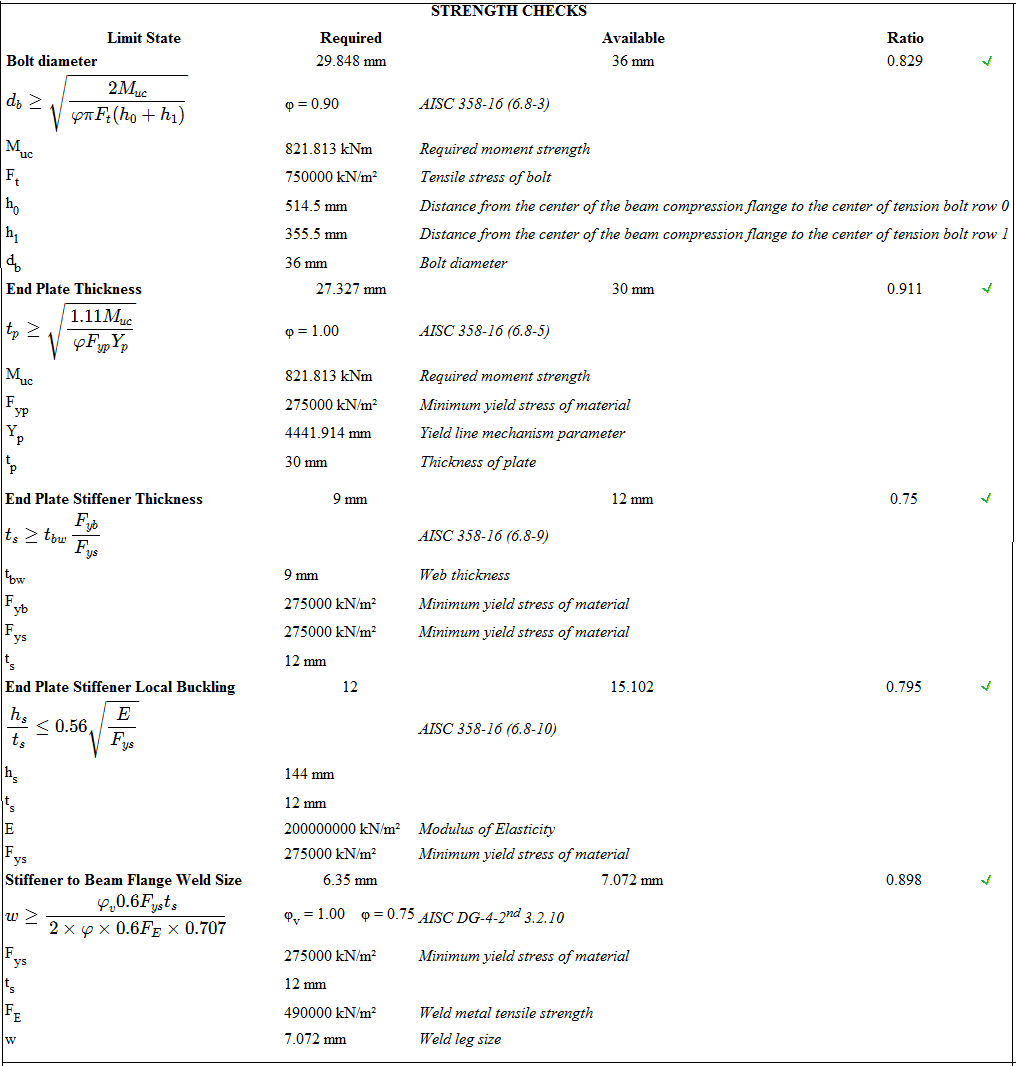 A sample of four bolts stiffened end plate connection report according to AISC 358-16 & AISC 360-16 is given below.