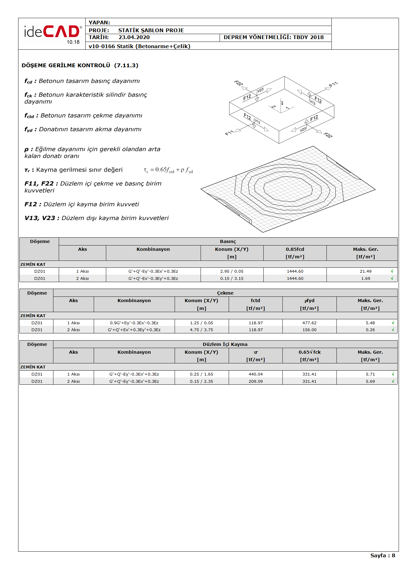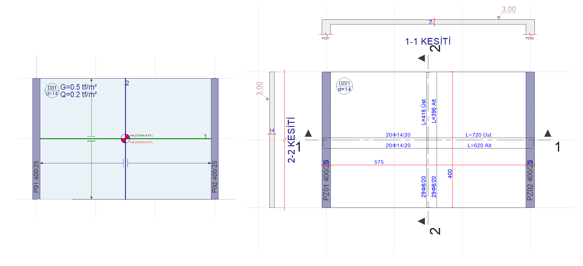 In the sample project, the in-plane pressure, tensile and shear stress control will be made in the D01 slab according to the conditions specified in Article 7.11.3 of TBDY.