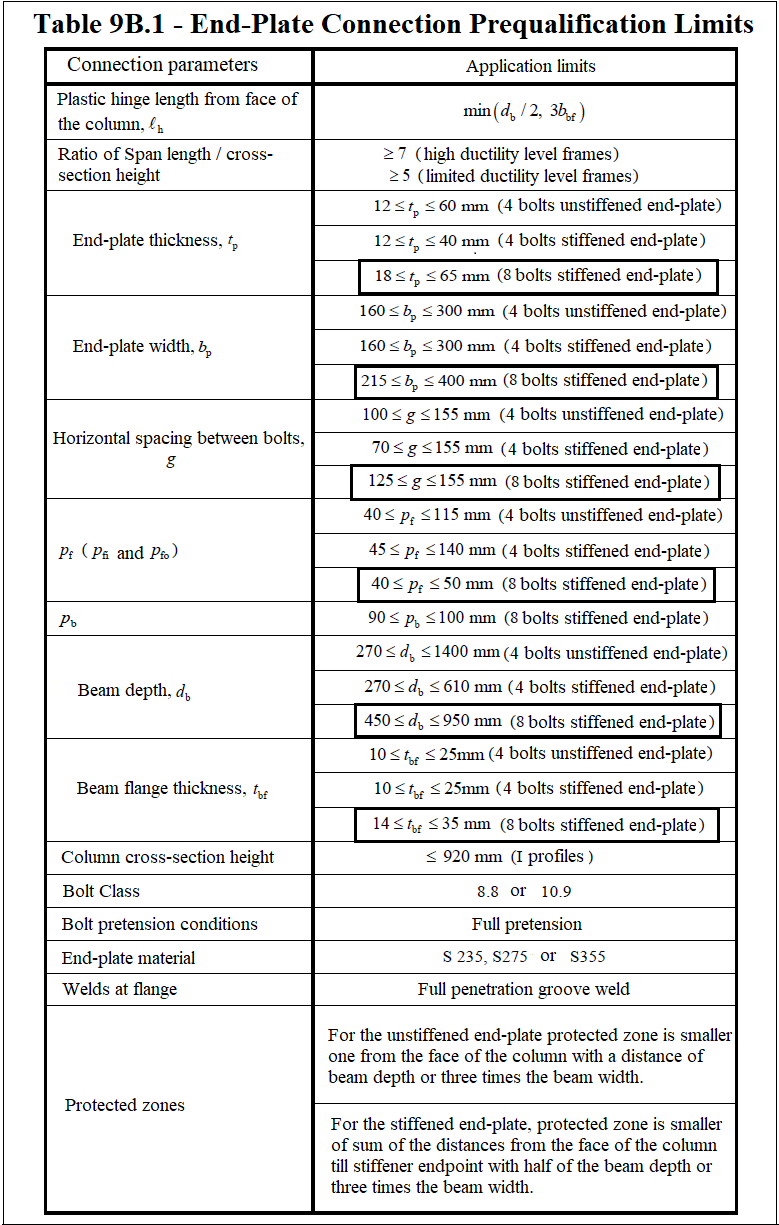 Conditions to be met for 8 Bolts Stiffened End Plate Connection are checked as specified in TBDY APPENDIX 9B.