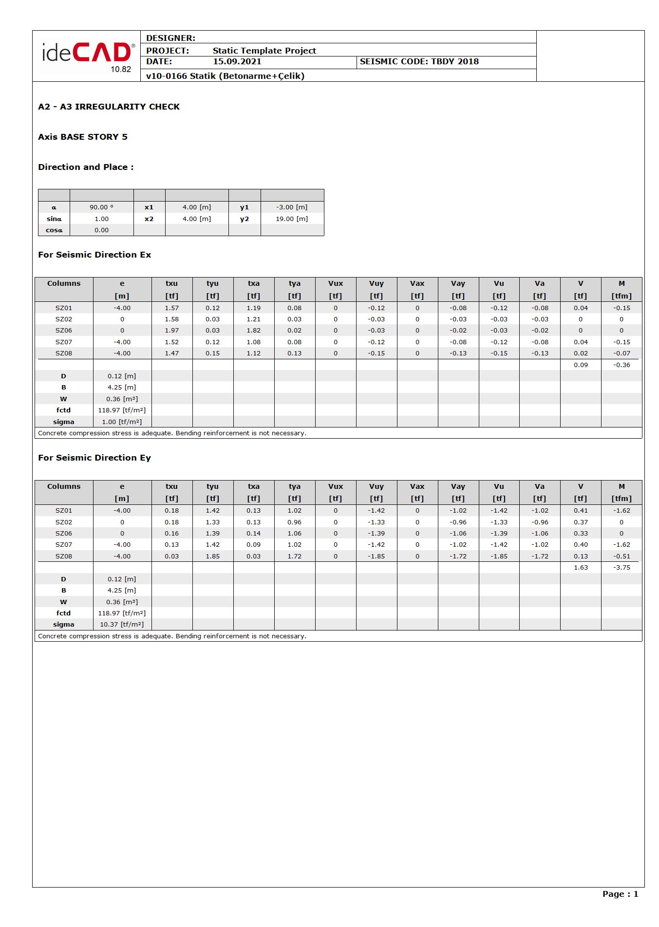 This control is carried out according to the conditions specified in TDY Earthquake Code 2007.