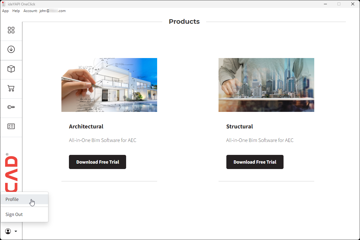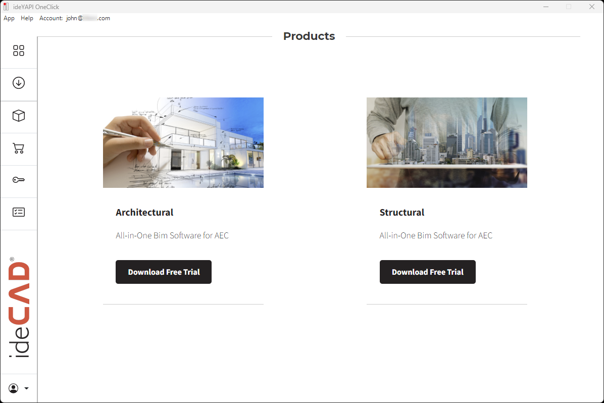 In the Order ideCAD tab, you can order ideCAD Architectural, ideCAD Structural Concrete, ideCAD Structural Steel and ideCAD Structural All-in-One.