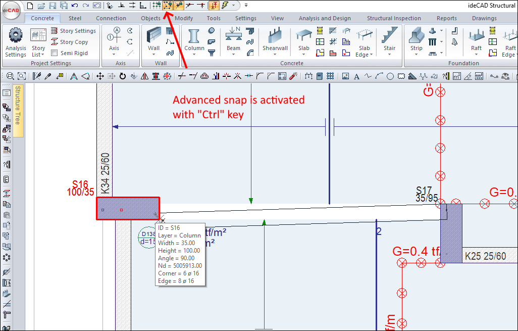 The advanced snap mode is activated if the "Ctrl" key is hold down on the keyboard while placing or modifying an object. It is ensured to snap the object from points other than the grid and nodes.
