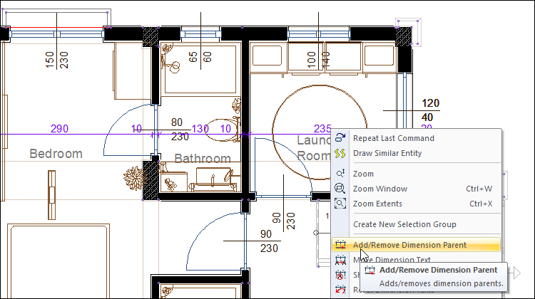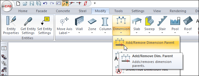 The Add/Remove Dimension Parent command is used to add or remove a new entity dimension to the inner and outer dimensions.