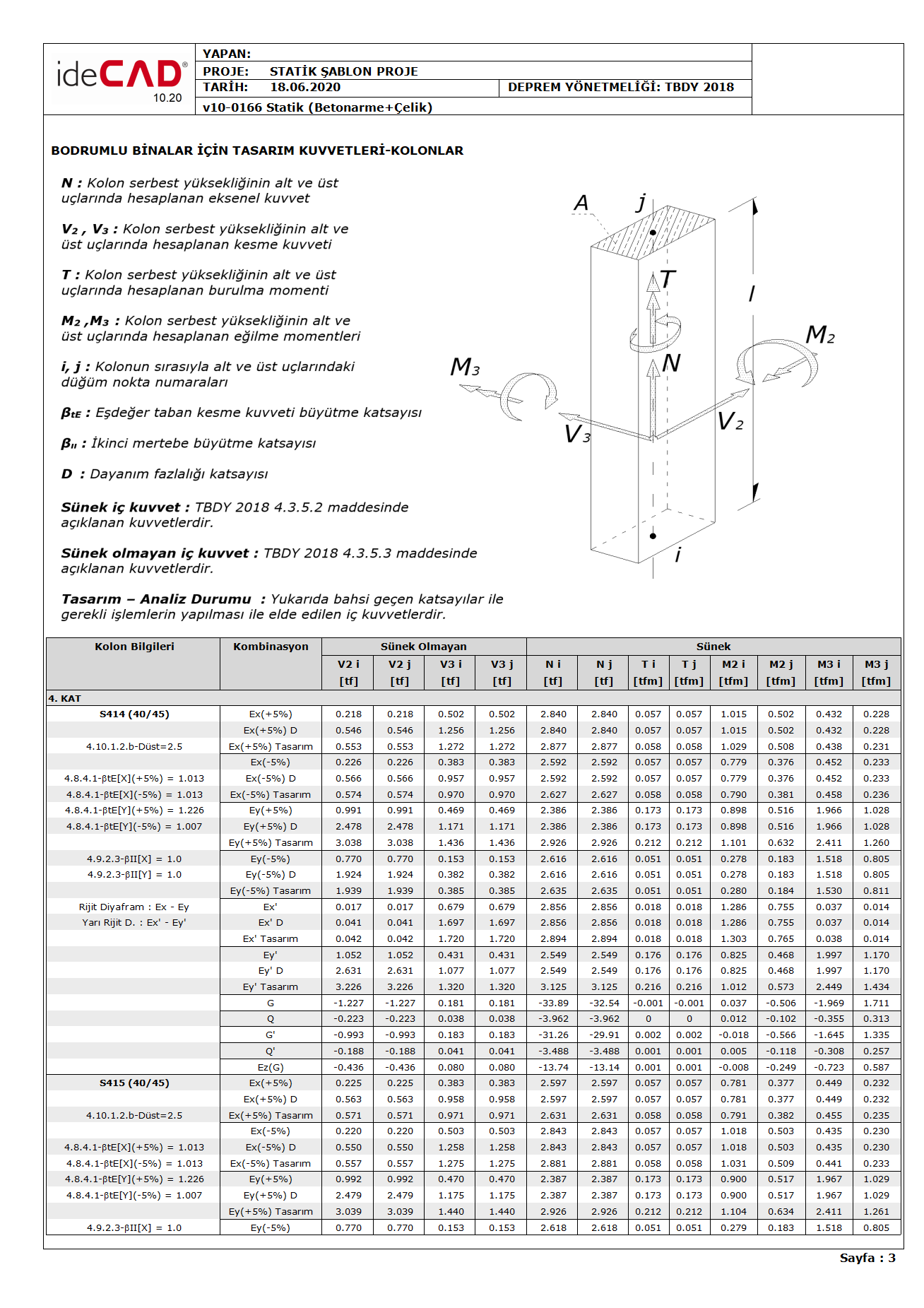 The cases where Strength Excess Coefficient D is applied can be seen in the design strength report of all elements. In the sample column report below, it is clearly seen at what forces the Strength Excess Coefficient D is applied.