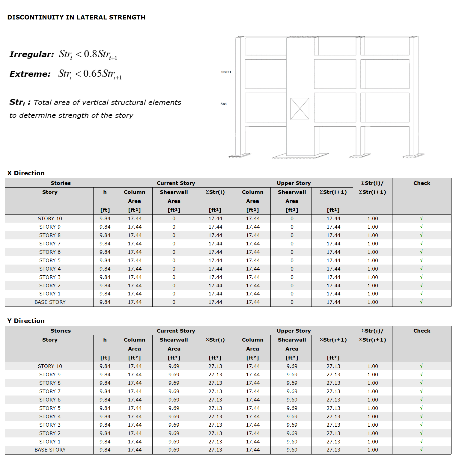 The Strength Irregularity Coefficient = ( Str )i / ( Str )i+1 < 0.80