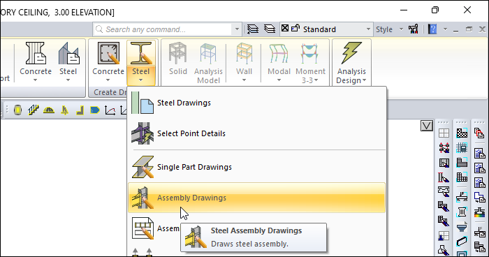 Before creating the drawings, you can access the Steel Drawing Settings dialog by clicking the settings button from the steel drawings dialog . From this dialog, layout settings, scales, fonts, etc. You can access parameters related to steel drawings.