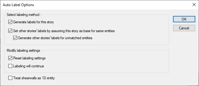 ![]() With the “Generate labels for this story” option, it only names the objects on the working floor. With the “Set othe stories' labels by assuming this story as base for same entities” option, it names the elements on the other floors to be the same as the elements on the floor being studied. With the “Generate other stories' labels for unmathced entities”, element on the other stories are checked. |