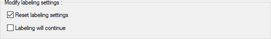 Modify labeling settings ![]() While labeling with reset, all names of the selected elements return to the project default. Labelling will continue at the end of the process, stores the names given to the elements in memory and reuses them in new naming. |