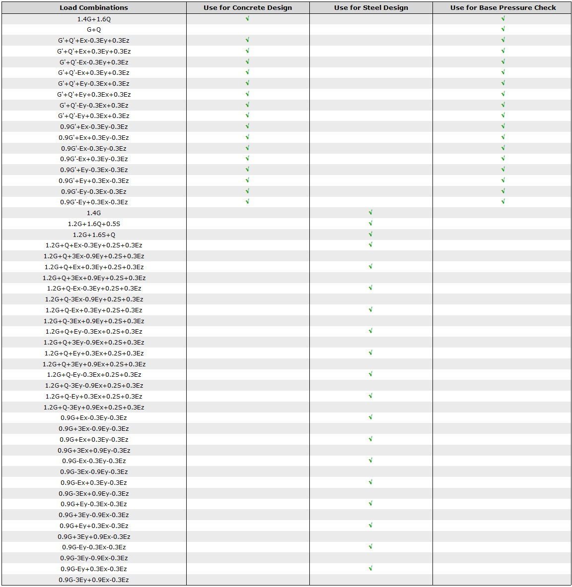The load combinations generated automatically by the program using ÇYHTYEY 2018 and TBDY 2018 for the building can be checked from Building Tree and Selective Report.