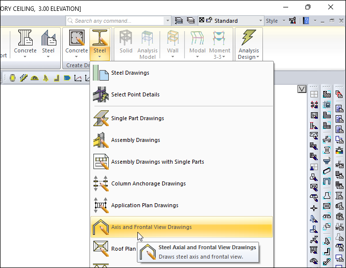 The Axis and Frontal View Drawings command is used to prepare axis and frontal view drawings .