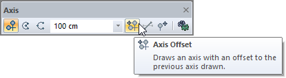 The Axis Offset command is used to generate new axes at a certain distance from an axis. When axis offset command is clicked, a new axis is drawn at the distance (cm) from the last drawn or selected axis to the value written in the axis offset box.