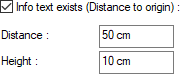 Info text exist (Distance from origin) ![]() The information text is the text on the left ends of the horizontal and vertical axis, showing the distance of the axis from the X or Y axis. If the option is selected, the information text is located on the axis. The distance determines how far the letter of interest will be from the axis line. Determines the size of the height calligraphy. |