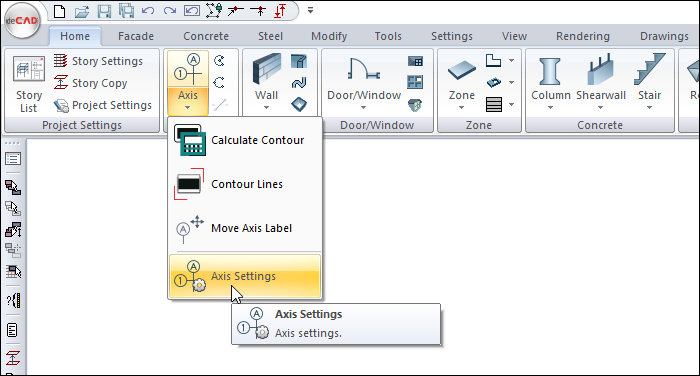 You can access it under the ribbon menu, Concrete tab, Axis heading.