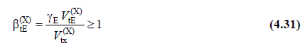 4.8.4.1 - In case V tx (X) <E * V tE (X) for any earthquake direction (X) , all reduced internal force obtained by the modal calculation method applied according to 4.8.2 or 4.8.3 and The displacement magnitudes will be enlarged by multiplying the equivalent base shear amplification coefficient β tE (X) given by Eq (4.31) .