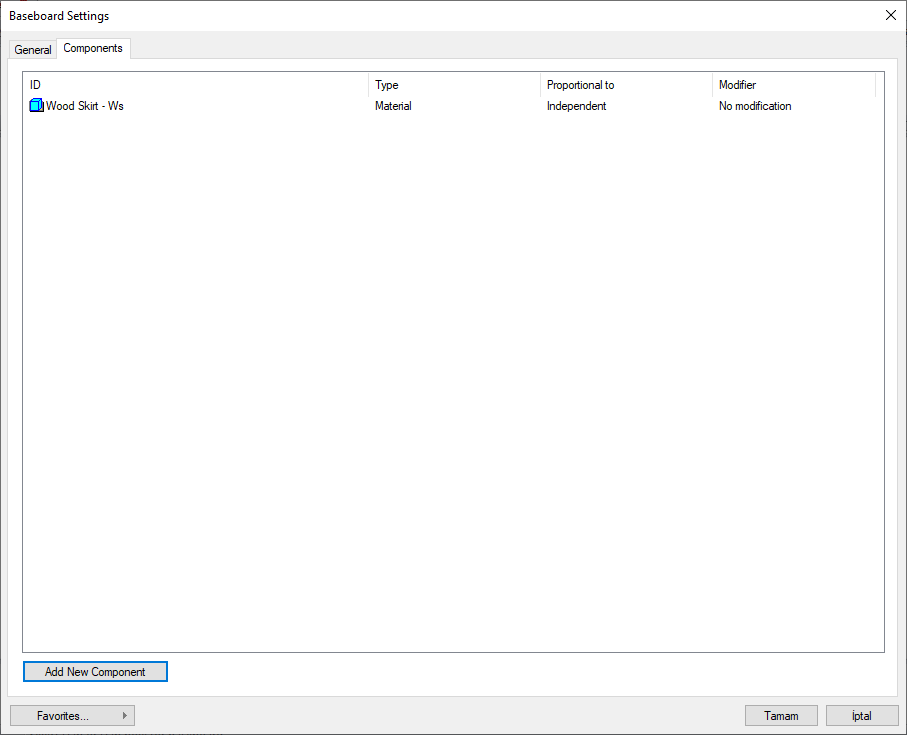 Volume | It means that the volume measure found when defining the material will be used by multiplying the baseboard volume. | |