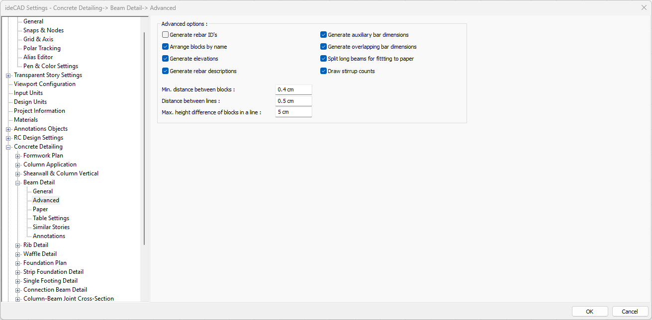Generate rebar ID’s ![]() If checked, rebar ID’s are shown in the drawings. If not checked, it will not be displayed. |
