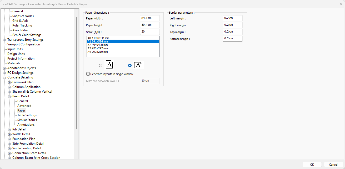 Split long beams for fitting to paper ![]() If marked, long beams that exceed the layout size in the drawings are divided. |