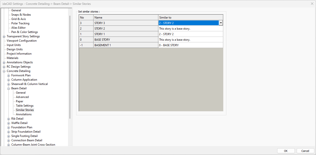 When arranging similar story beam details, the most unsuitable main story should be chosen. Otherwise, the equipment that is not on the main story but on the upper stories will not be visible in the drawings. The main story should be determined by checking the beam reinforcements from the concrete dialogs or reports.