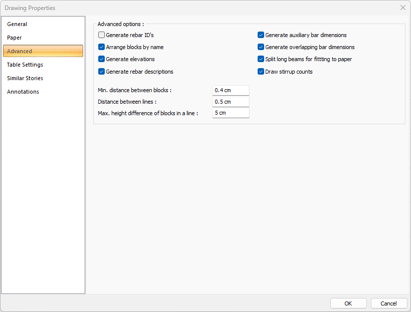 Draw rebar ID’s ![]() If checked, rebar ID’s are shown in the drawings. If not checked, it will not be displayed. |
