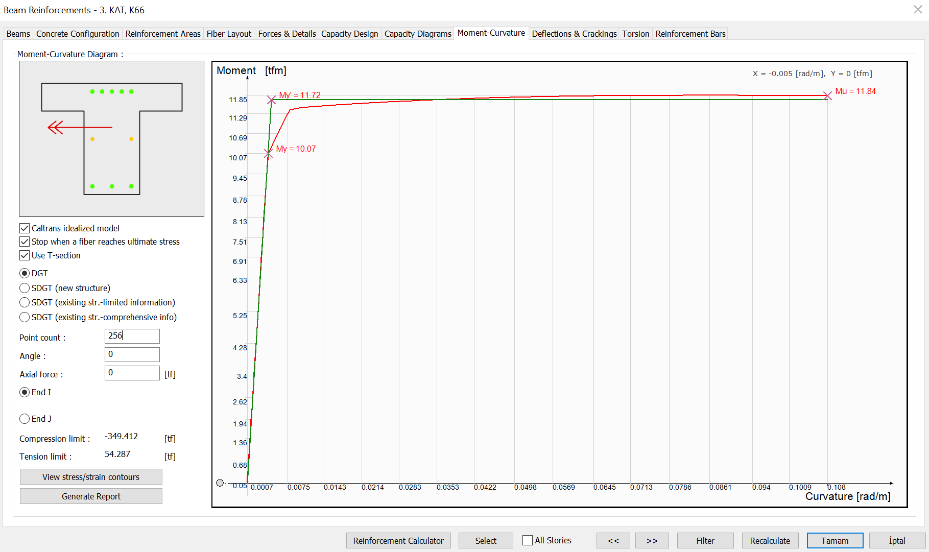 Click the Generate Report button from the moment-curvature tab of the beam reinforcements dialog .