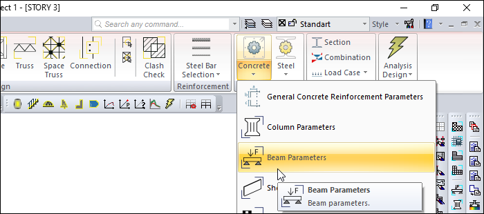 Ribbon menu Analysis and Design tab Design Parameters title under the Beam Parameters by clicking on the command Beam Parameters can be found in the dialogue.