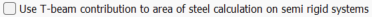 Use T-beam contribution to area of steel calculation on semi rigid systems ![]() If marked, in the semi-rigid systems, T-beam contribution is used to area of steel calculation. |