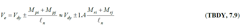 The design strengths M ri and M rj values calculated from the Design Based on Strength approach, since the design strength f cd of the concrete and the design yield stress f yd of the reinforcement are used, the moment capacities at both ends are M pi = 1.4 M ri and M pj according to Article 7.4.5.1 of TBDY. = 1.4 M rj .