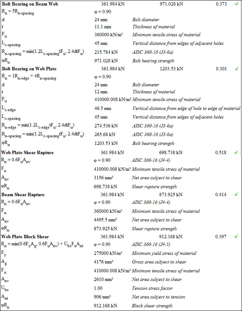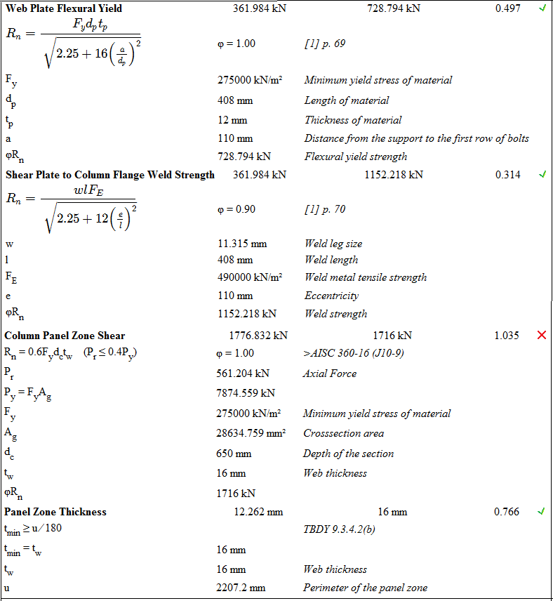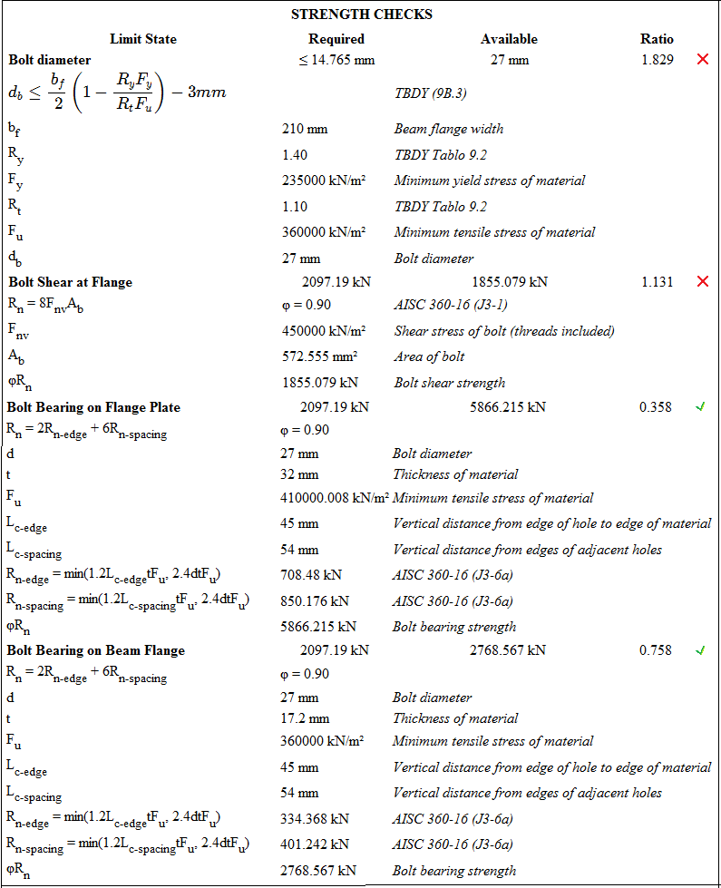 Design limit states of bolted flange plate connections are calculated automatically according to AISC 358-16 and AISC 360-16.