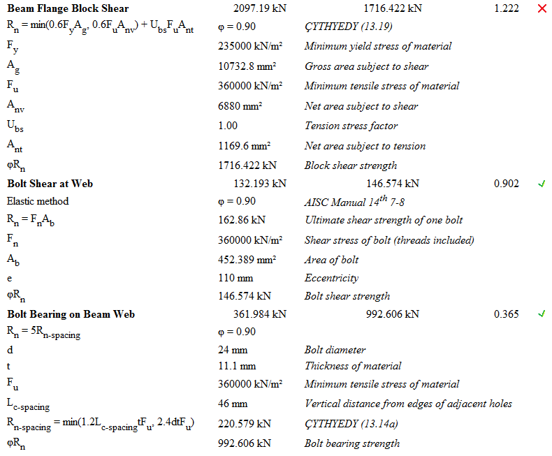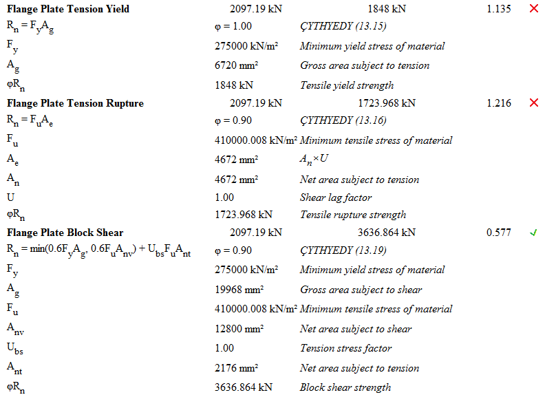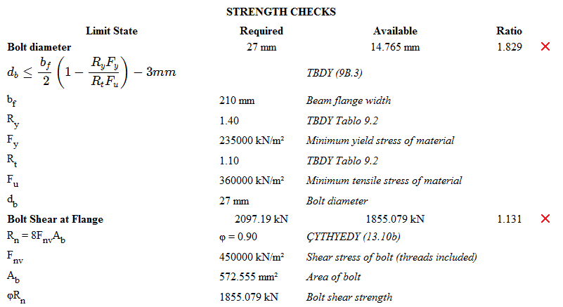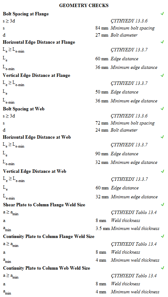 Bolted Flange Plate Connection design is made automatically according to the Design, Calculation and Construction Principles of Steel Structures (ÇYTHYEDY) , AISC 360-16, AISC 358-16 and TBDY regulations and a connection report is created.
