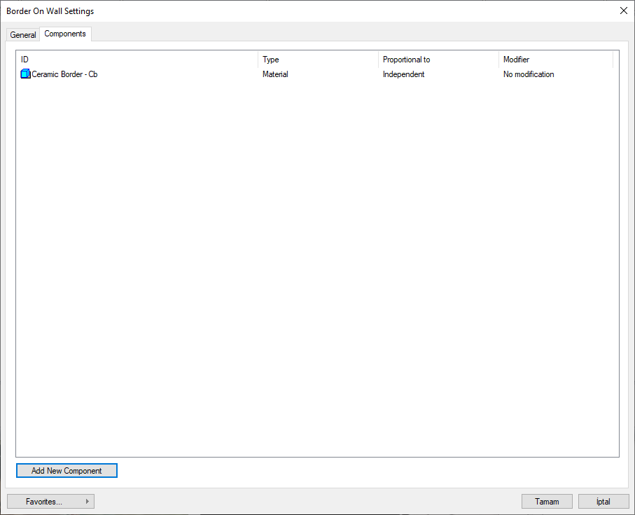 Volume | It means that the volume measure found when defining the material will be used by multiplying the border on wall volume. | |