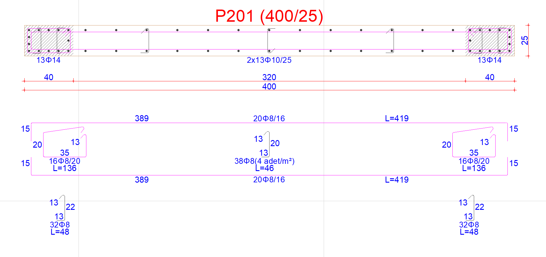 In the wall end zones, the ratio of the total vertical reinforcement area of each wall end zone along the critical wall height defined in 7.6.2.2 in accordance with Article 7.6.5.1 of TBDY is arranged to be at least 0.002. Except for the critical curtain height , this ratio is arranged to be not less than 0.001. The longitudinal reinforcement ratio in the wall end zones is arranged to be at most 0.03 (0.06 in the overlap zone). At the same time, the amount of longitudinal reinforcement in the wall end regions is arranged not to be less than 4ϕ14.