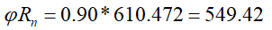 367,989 kN | 549.42 kN | 0.670 | √ |