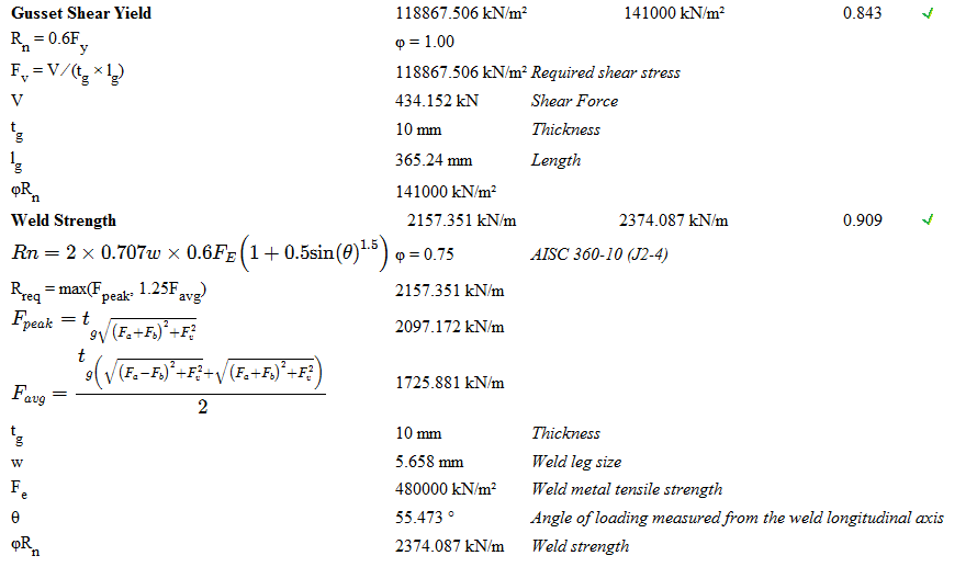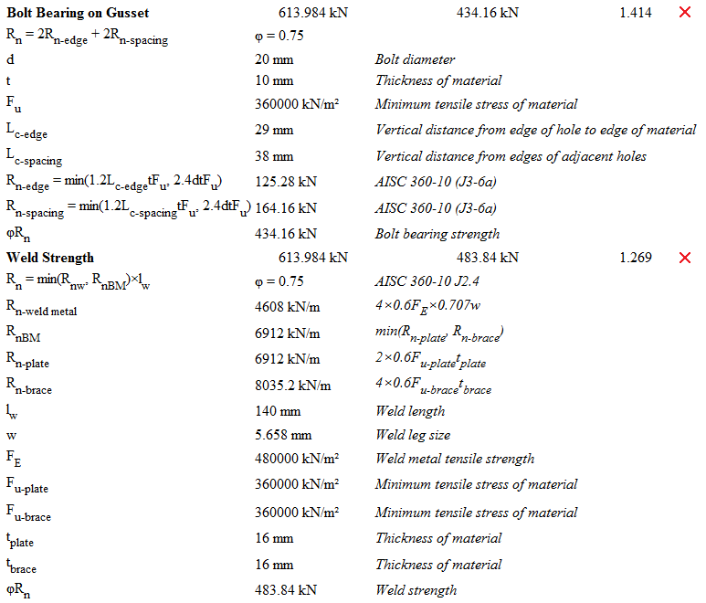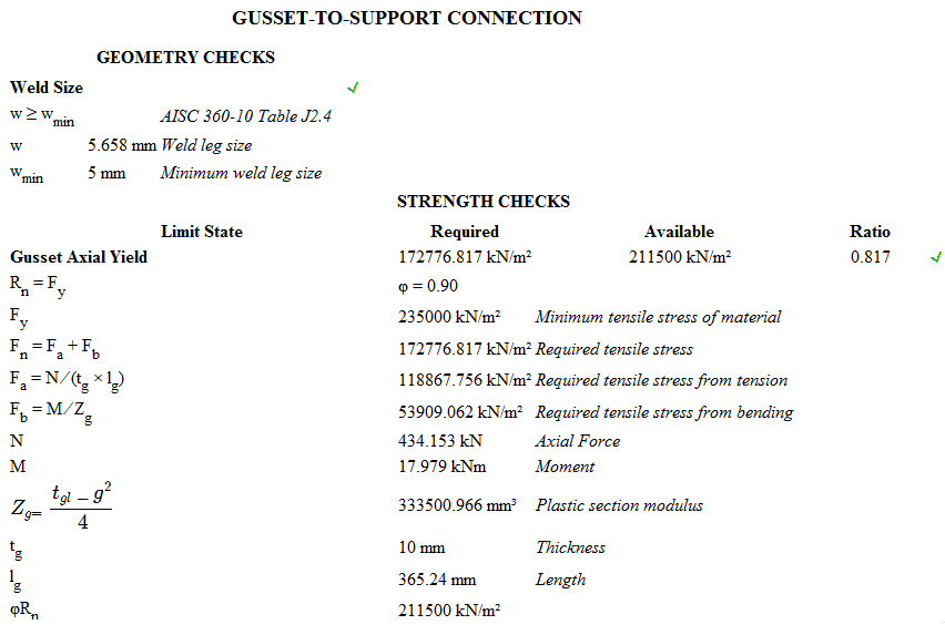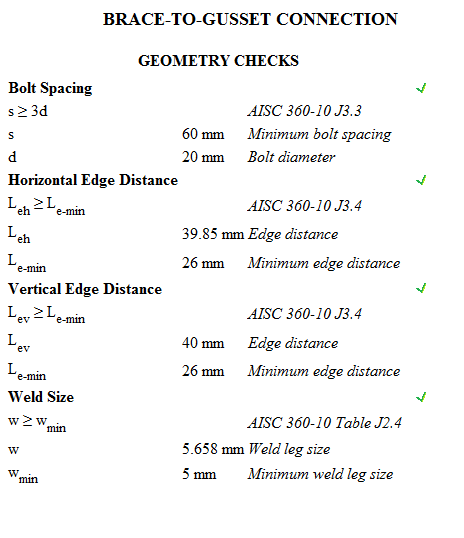 Brace corner connection design is made automatically according to the Design, Calculation and Construction Principles of Steel Structures (ÇYTHYEDY) , AISC 360-16, and the connection report is created.