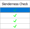 Slenderness check ![]() It is an information box whose sign changes according to whether the delicacy limit is exceeded or not. |