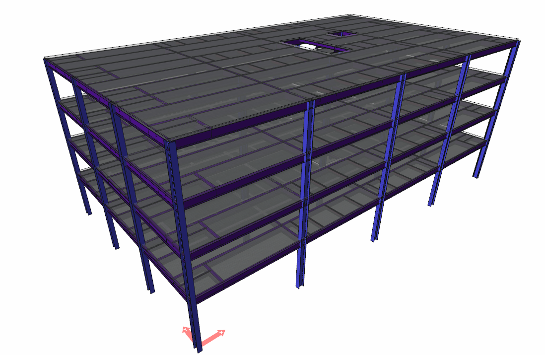 The building consists of 4 axes with a span of 8 m in the X direction and 3 axes with a span of 6 m each in the Y direction.