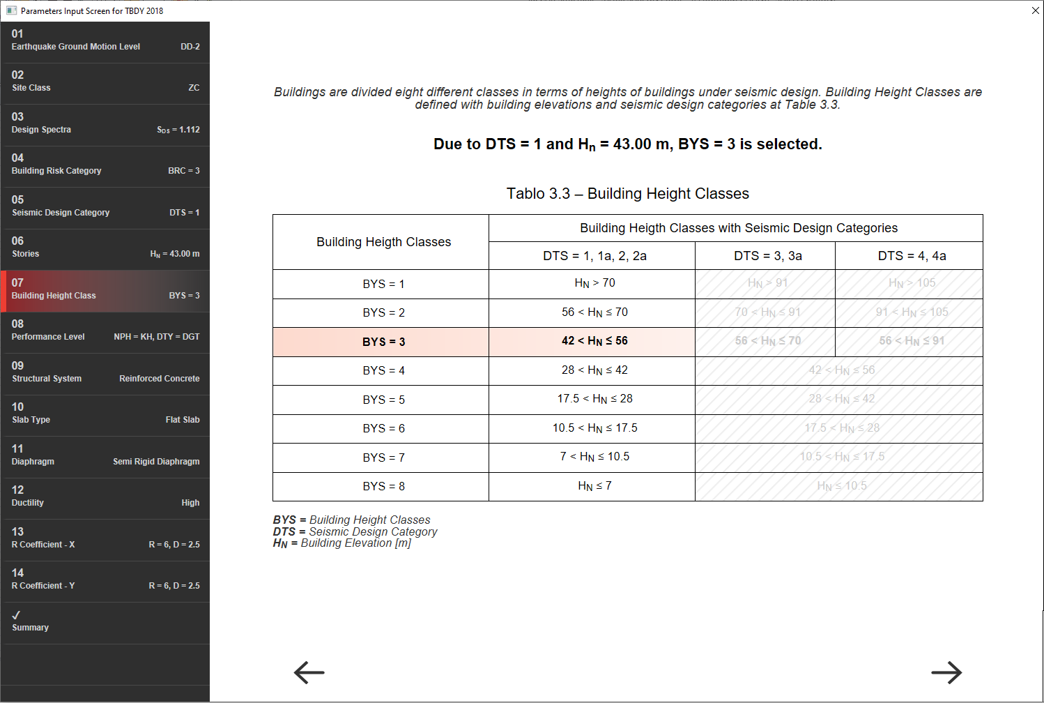 In the program, it creates a tool for determining the building height with rigid sign in the story general settings. Then, when the conditions (a) and (b) are met, BYS class is determined.